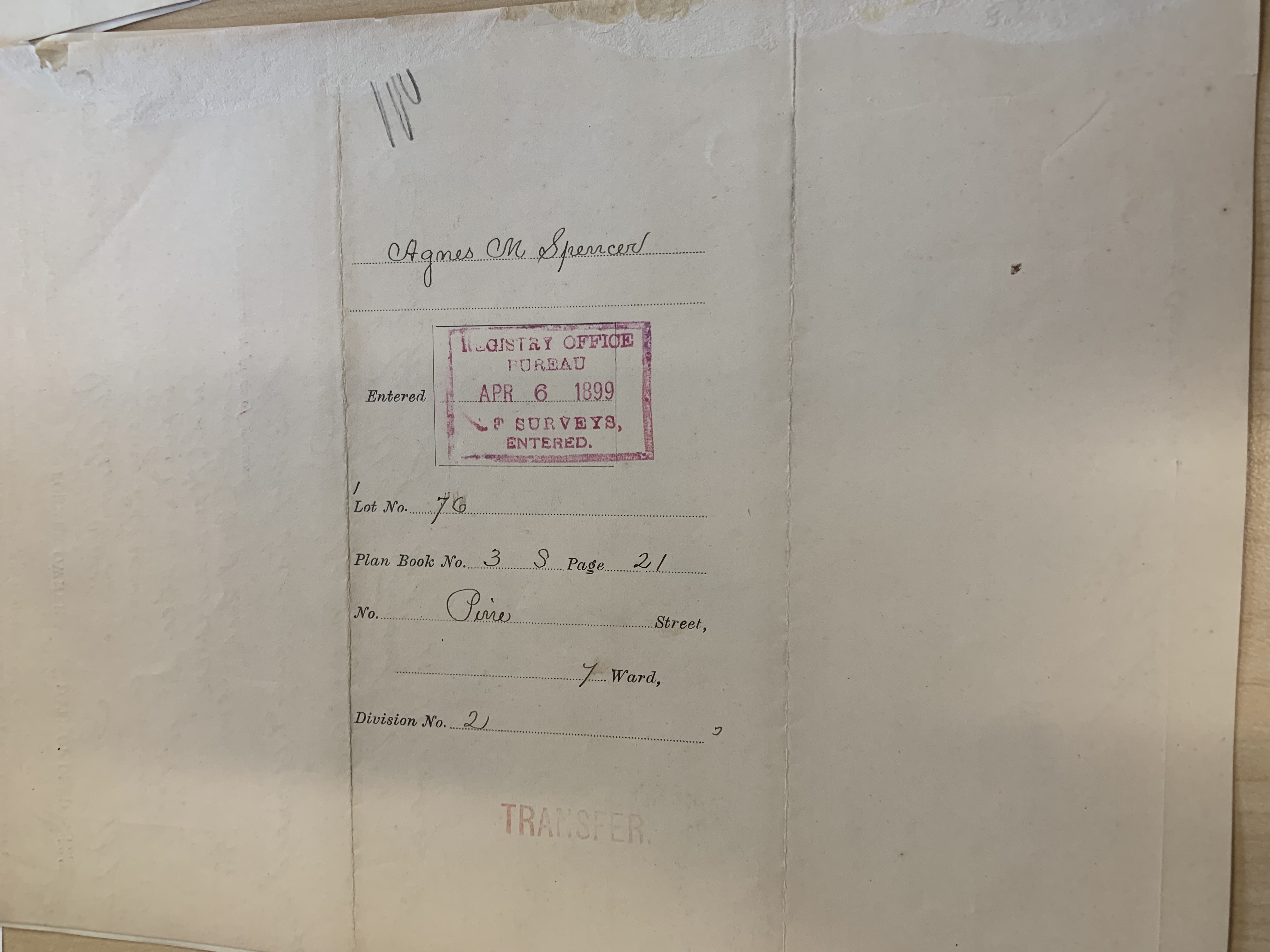 Ownership record dated April 3, 1899.